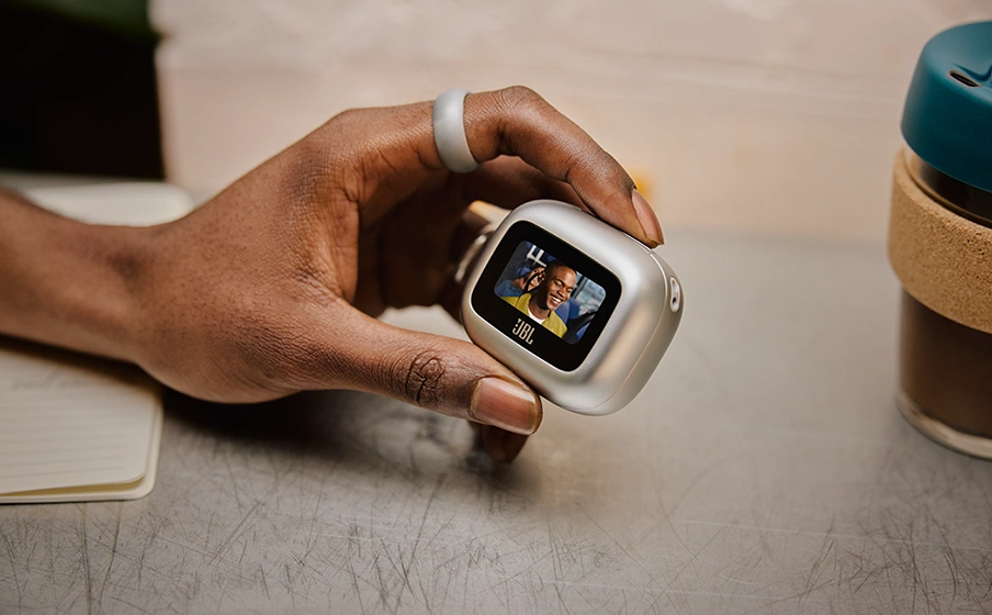 Puedes personalizar todos los aspectos de tus auriculares JBL Live Beam 3 con la pantalla táctil de 1,45 pulgadas de tu Smart Charging Case™. La pantalla te ofrece un control total del sonido en cualquier dispositivo —portátil, televisor, smartphone o tableta portátil—, sin necesidad de acceder a la aplicación JBL en tu smartphone.
